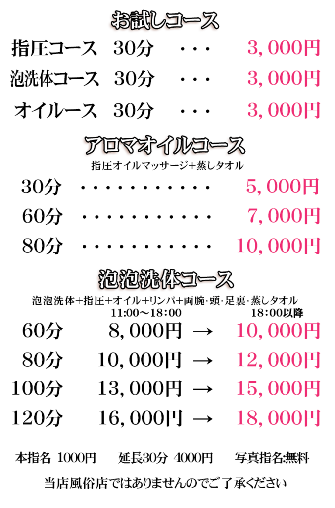 まだ、お客様のご申告無く当店の施術を受けられた後、何らかの症状が出た場合一切責任お負いかねます。